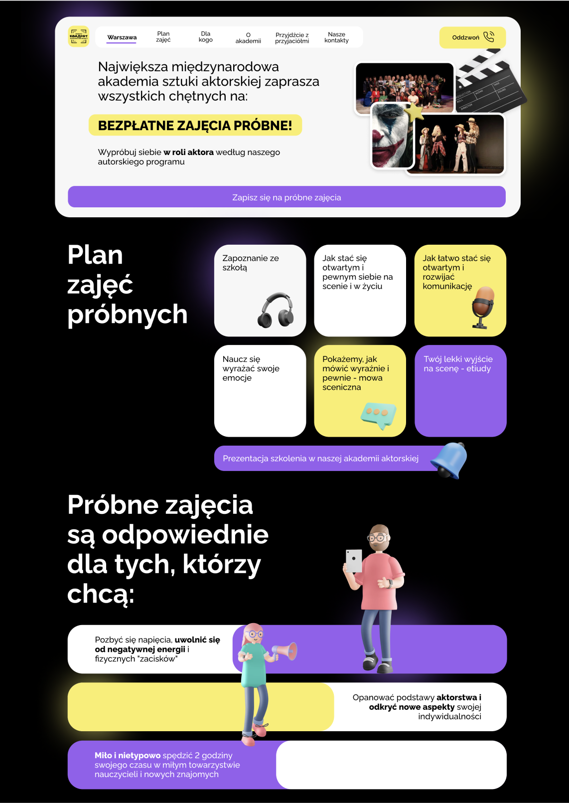 An international company that teaches people some really cool stuff, namely, acting skills. This helps individuals to break out of their shells, gain self-confidence, and, of course, get closer to the world of theater. We've been working together since February 2023.